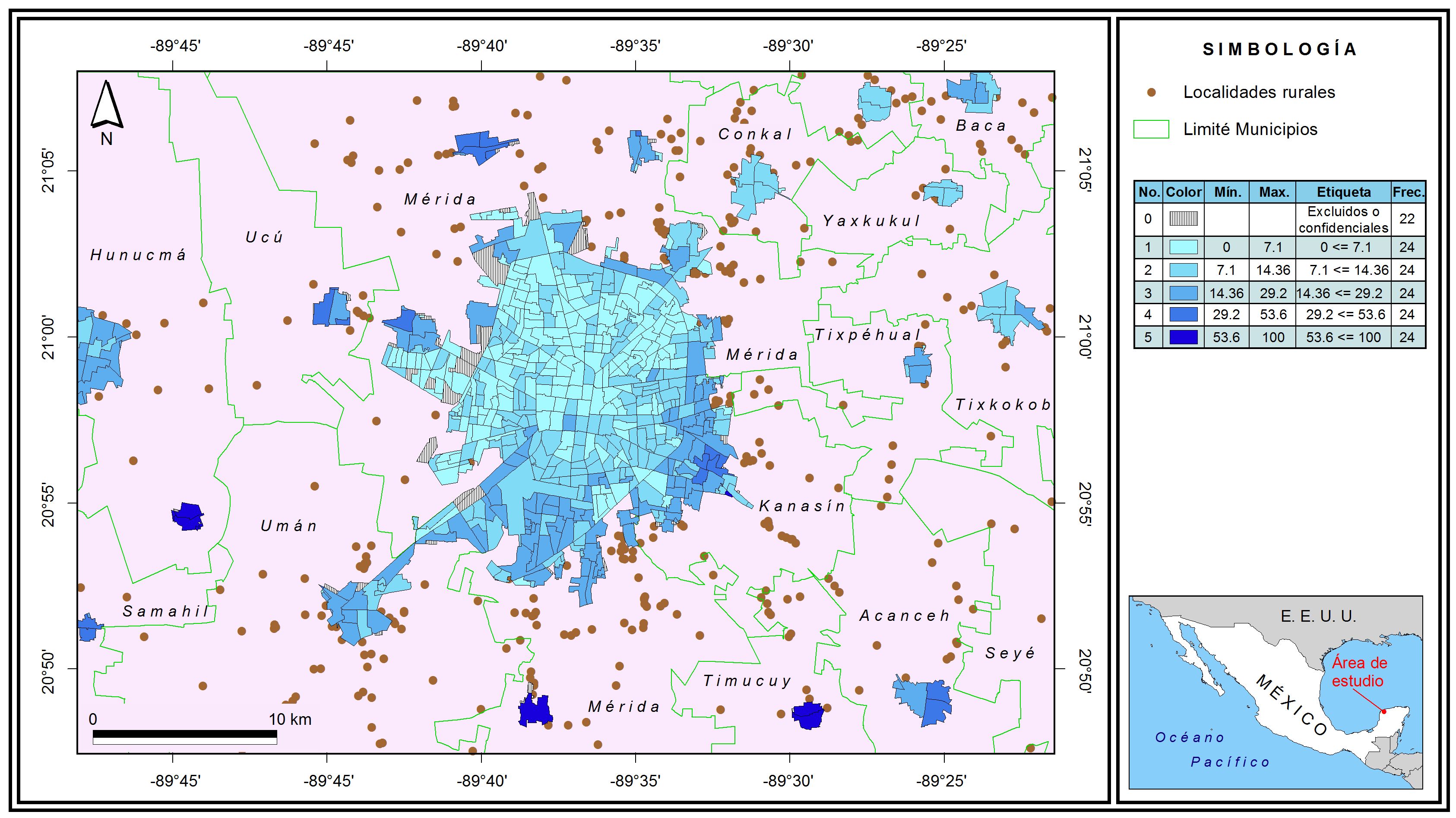 GARCÍA GIL, Gerardo, Oliva Peña, Yolanda, y Ortiz Pech, Rafael (2012). Distribución espacial de la marginación urbana en la ciudad de Mérida, Yucatán, México. Investigaciones Geográficas, 77,89-106.